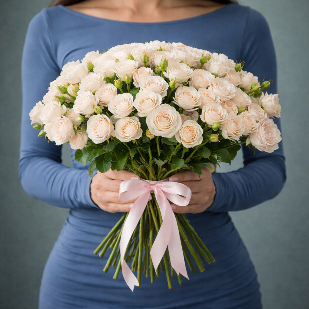 Букет «Пудровая нежность» — это облако лёгкости, собранное из изящных кустовых роз. Нежные кремово-розовые бутоны создают ощущение тепла, уюта и искренней заботы. Воздушная композиция выглядит трогательно и элегантно, наполняя пространство мягкой романтикой и светлым настроением. Такой букет станет прекрасным подарком для признания в чувствах, благодарности или душевного знака внимания без лишних слов.