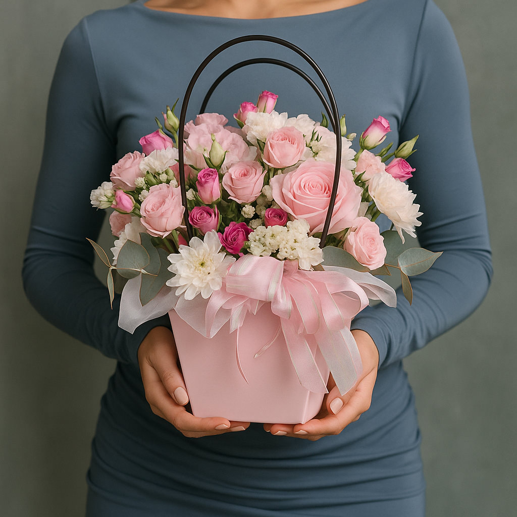 Изящная композиция из роз в розово-малиновом миксе подчеркнёт нежность момента. Такой подарок удивит своей красотой и лёгкостью.